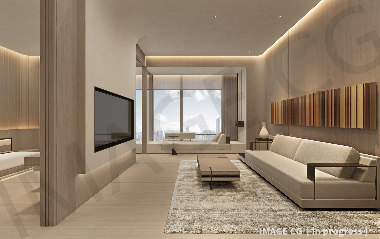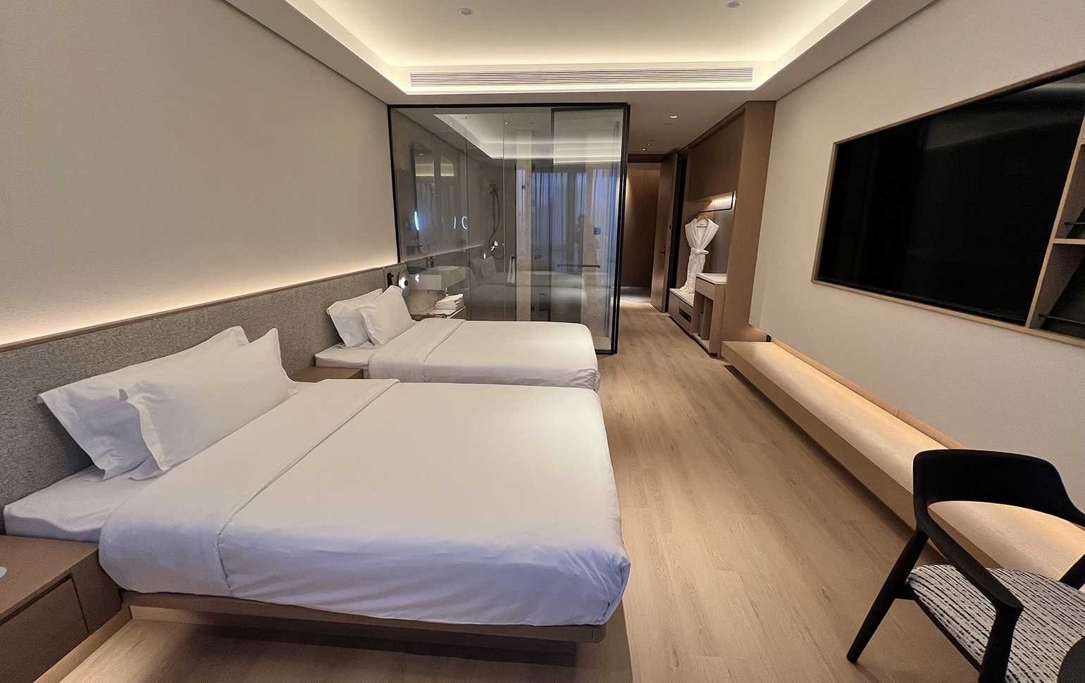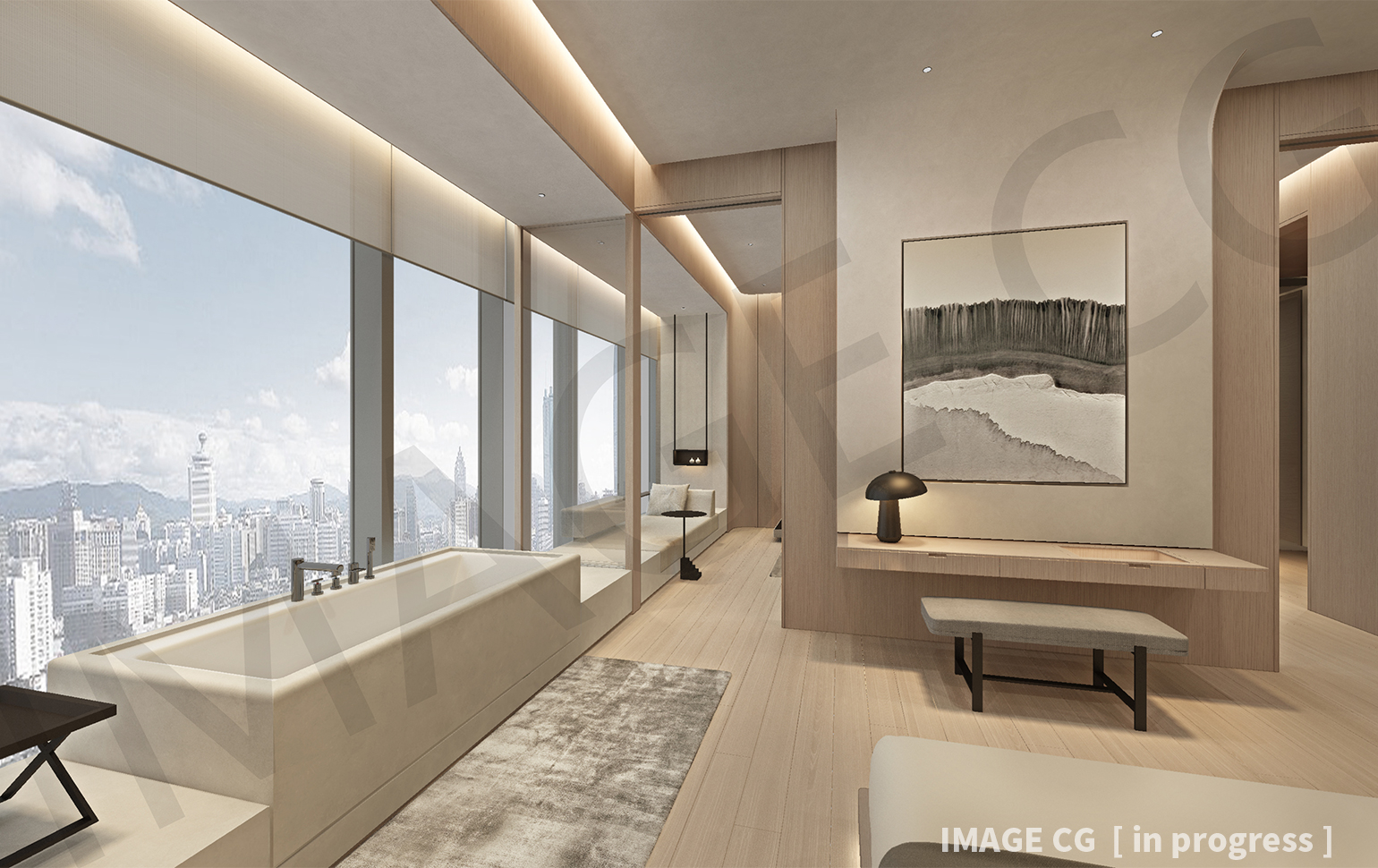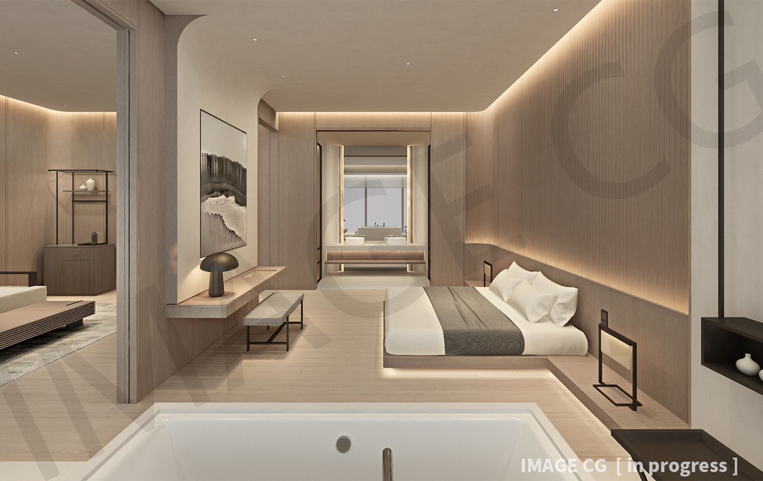 その各ランクに合わせてシンプルモダンからラグジュアリーまで、部屋ごとに光のあり方を策定しつつ共通するデザインコードと照度設計を軸に照明設計を行なっている。