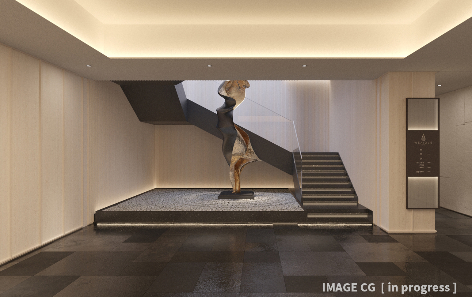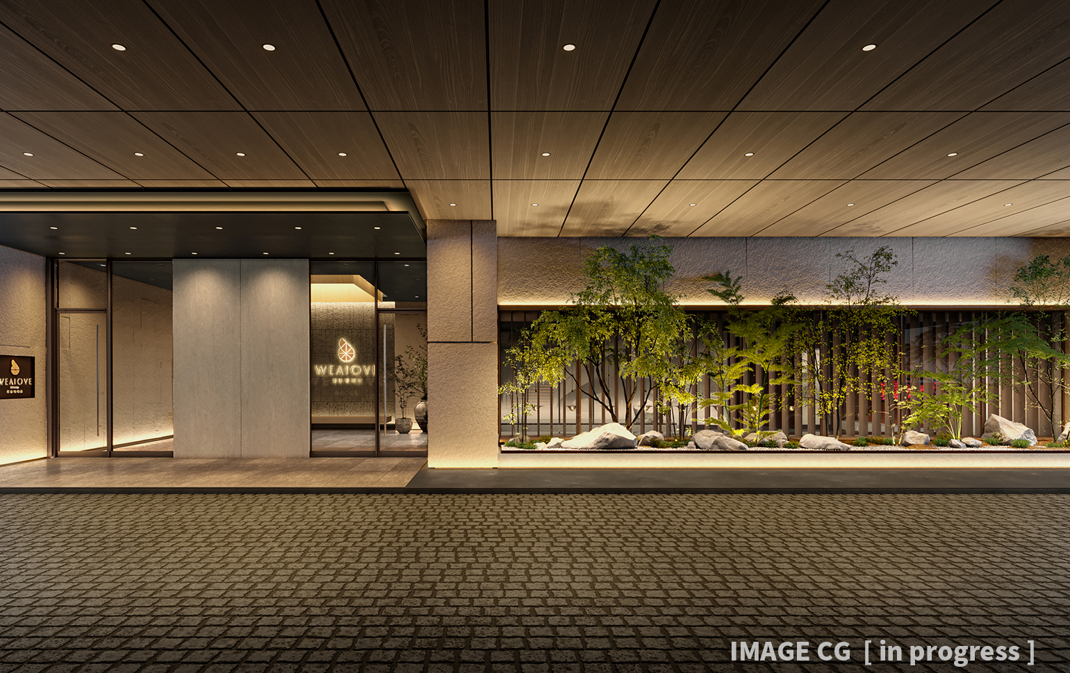 中国河北省の保定市にて建設中の大型ホテルのエントランス及び外構の照明計画。