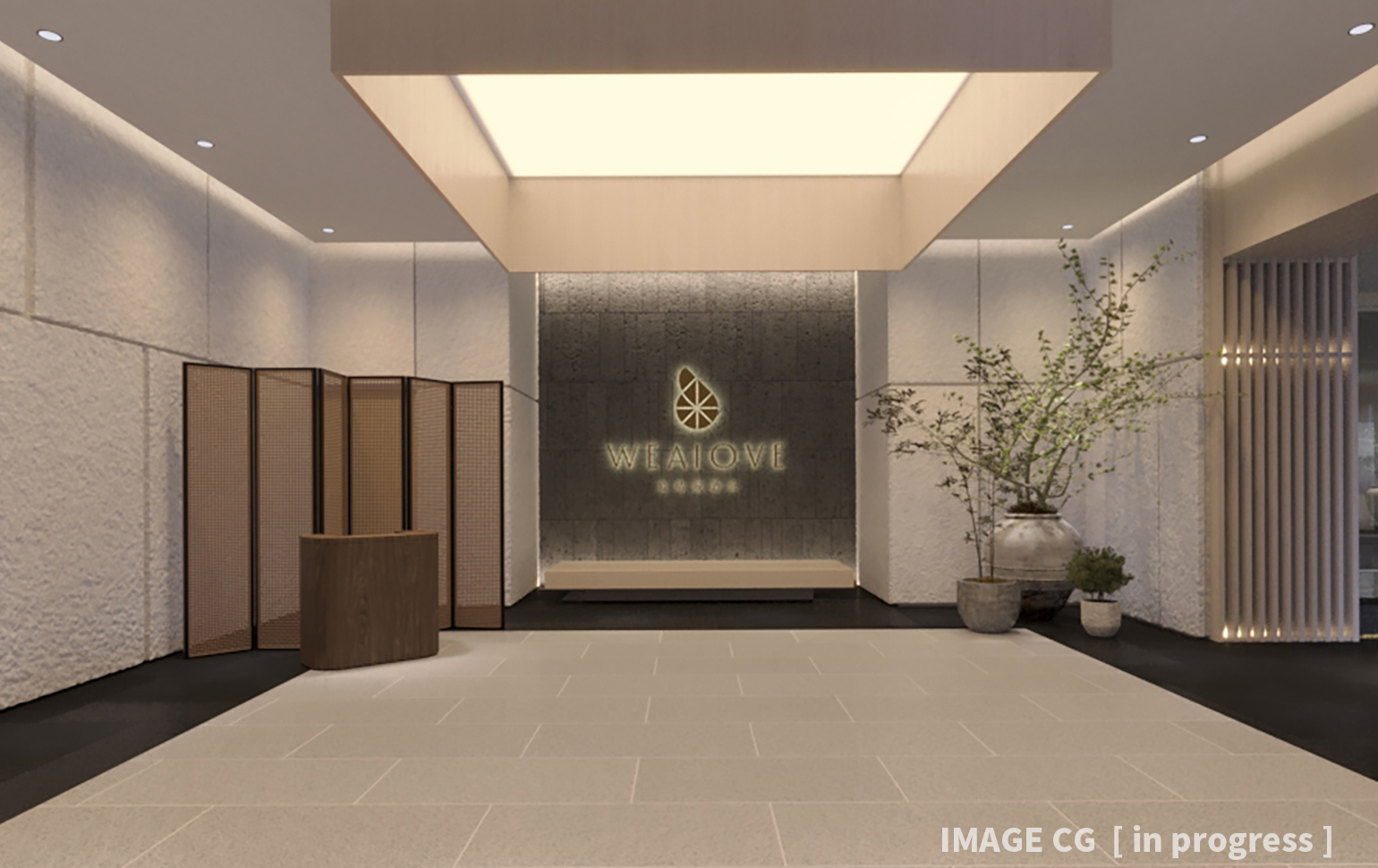 そのため、留まる場所と流れる場所を照度の差で繋いで訪問者が緩やかな境界と導線が感じ取れる様に照明設計を行なっている。